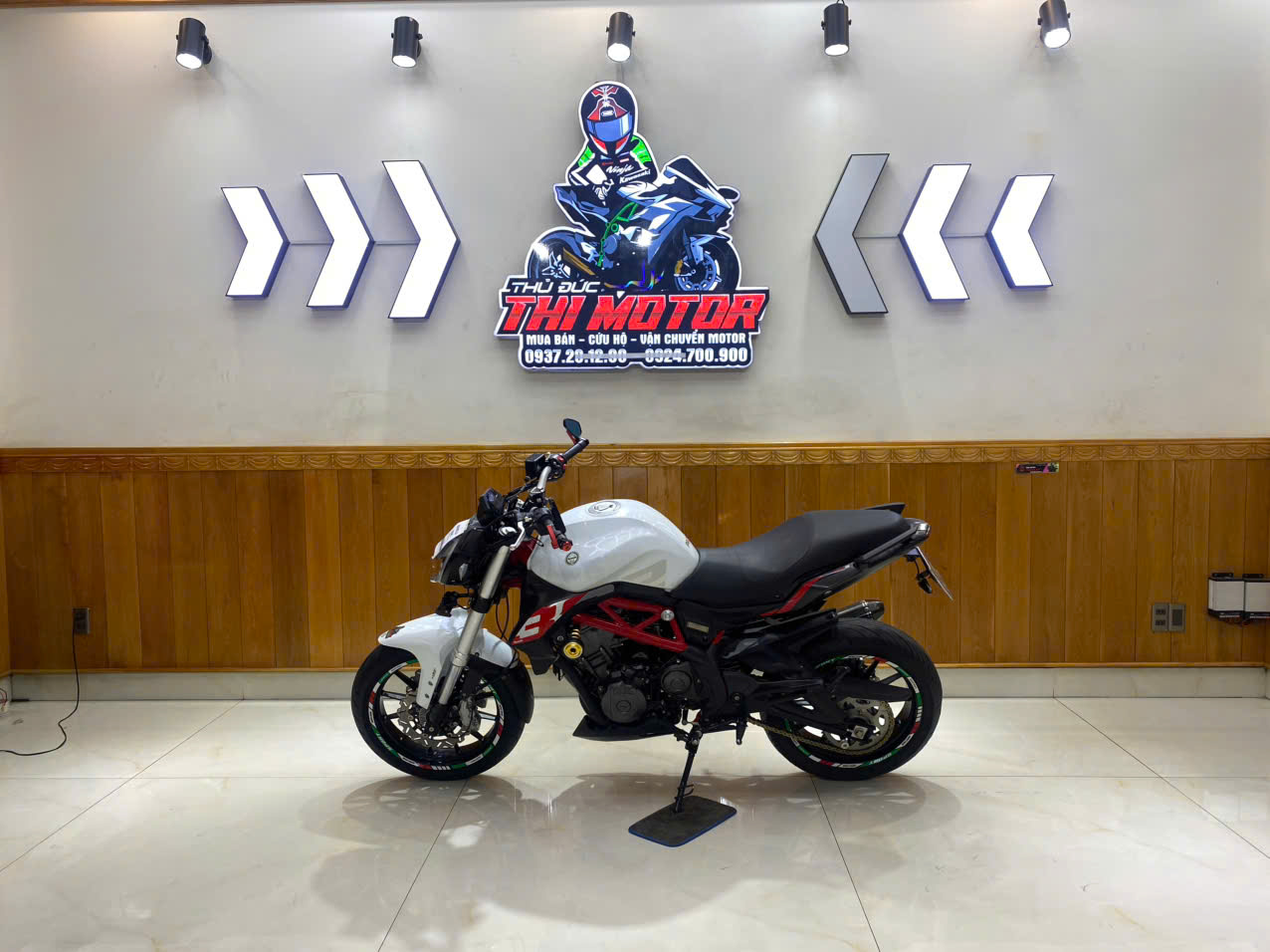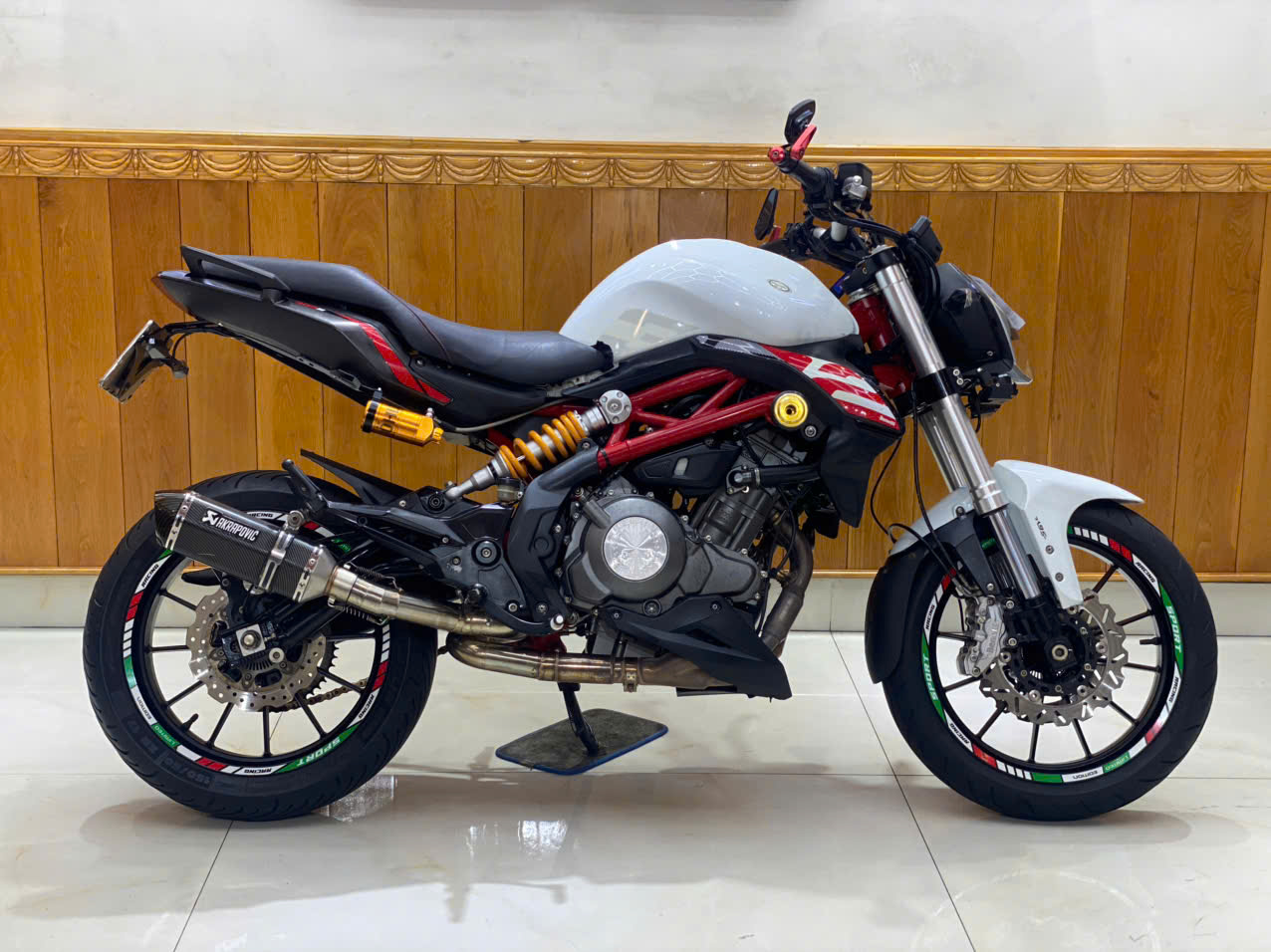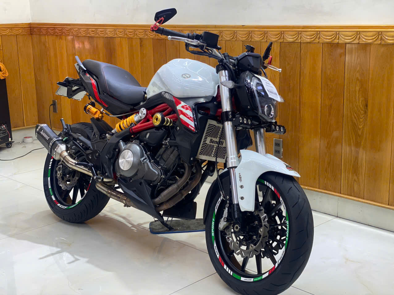 • TÔNG MÀU: Trắng/Đỏ nổi bật, sạch sẽ, khung sườn Trellis đỏ đặc trưng của Benelli.
