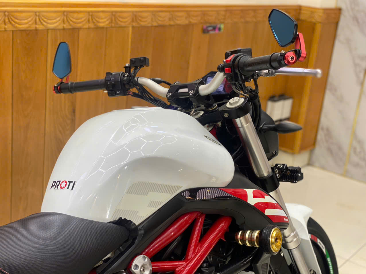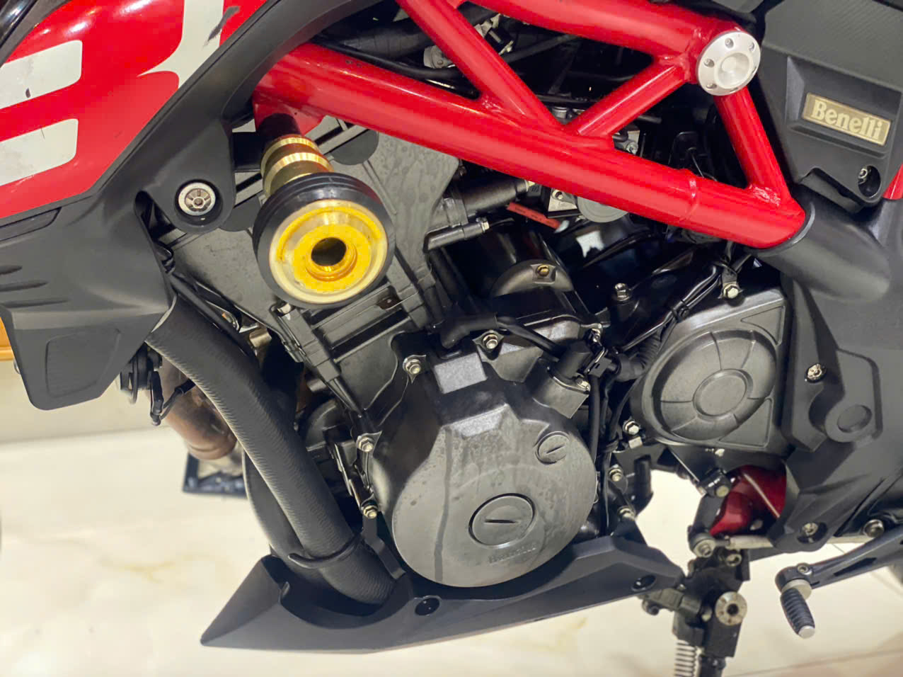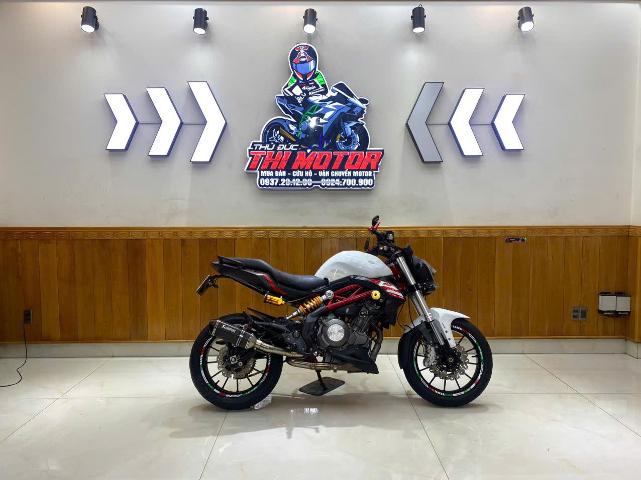 • TÔNG MÀU: Trắng/Đỏ nổi bật, sạch sẽ, khung sườn Trellis đỏ đặc trưng của Benelli.