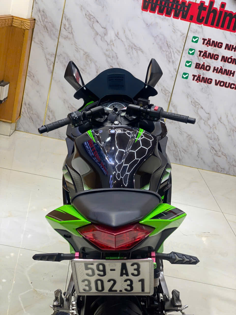 Ngoại hình đen xanh truyền thống Kawasaki, tem zin đẹp, dàn áo liền lạc,