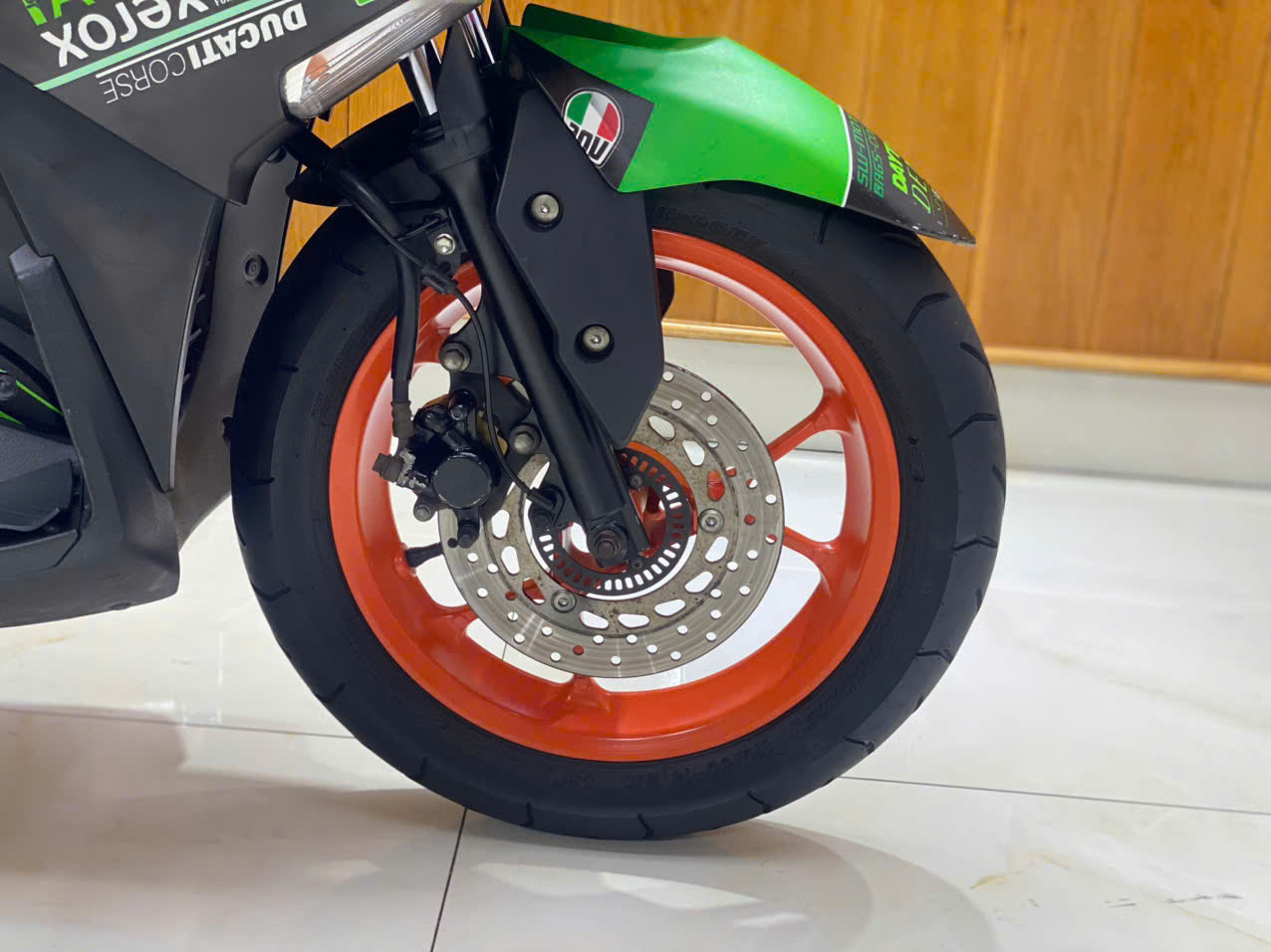 ✅ Cá tính mạnh: Xe đã lên full tem độ phong cách Superbike, mâm cam nổi bật trên nền xe đen/xanh.